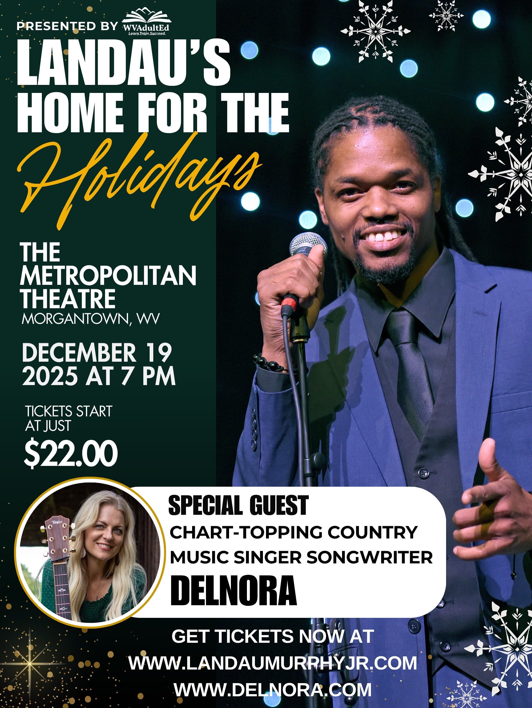 Landau Eugene Murphy Jr.’s 15th Annual Home for the Holidays Tour kicks off this December! The annual Christmas event brings NBC’s America’s Got Talent winner home to West Virginia to perform Christmas classics and holiday favorites for audiences all across the Mountain State. This year’s special guest on the tour is multi-award-winning singer-songwriter Delnora.